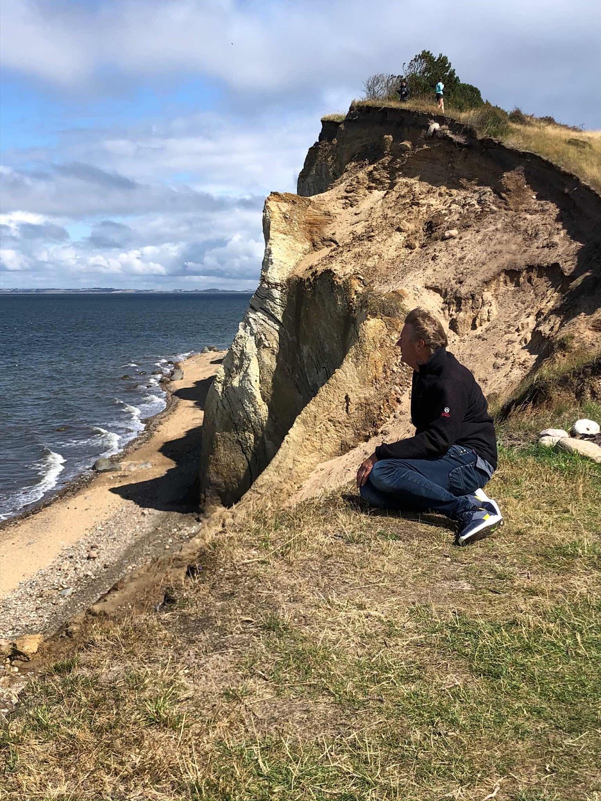 We hadden gisteren ergens een bord zien staan aan de kant van de weg met ‘sandwiches’. Dat leek ons wel wat en zo belanden we in een slagerij/kledingzaak/galerie etc waar ze dus ook broodjes maakte. Heerlijk met sterke kaas en een met rosbief, leuk plekje waar we van genoten. Hierna gaat de tocht naar de groeve, inderdaad zien we hier goed de verschillende lagen gesteente door de ijskap die hier lag en zich langzaam terugtrok. Na de standaard fotoshoots van DK was de klif aan de beurt, altijd grappig om te zien wat voor een verhaal ze om een ‘wand van zo’n 10 meter maken. We hadden geen zin om hetzelfde pad terug te fietsen/klimmen dus ging de tocht te voet naar een andere aansluiting op fietspaden.