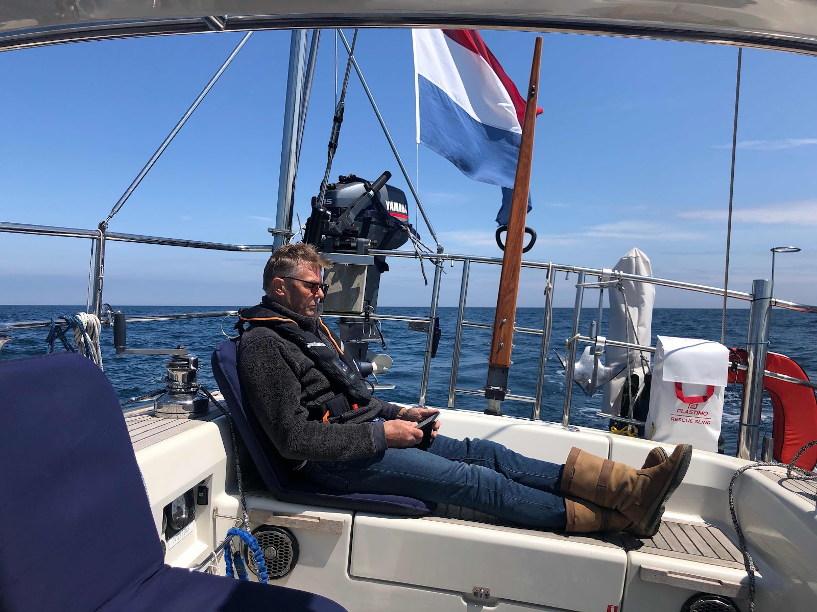 Dianne neemt nog even een pleister, het wordt bokkig op zee. We krijgen veel water over, moeten hoog aan de wind sturen. Zeker als de stroom tegen is dan gaat het lekker over het dek, vaak ‘vast’ water.